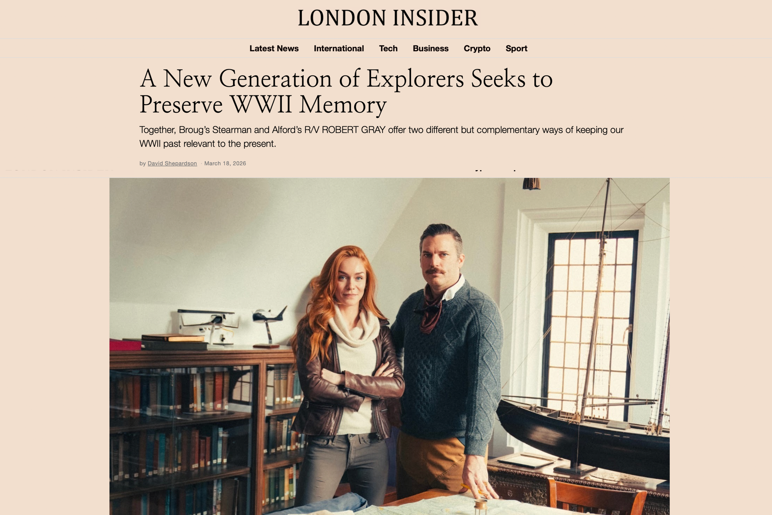 A London Insider profile on Kate Broug’s work in aviation, exploration and historical preservation, highlighting her Boeing Stearman, the Air & Sea initiative, and her efforts to keep the stories of World War II relevant through exploration and media.